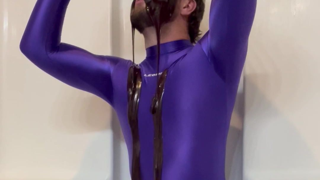 While wearing my purple Amoresy catsuit, I am live streaming and get a request for a chocolate shower video. Dumping an entire tub of hersheys chocolate on myself and then cranking until I finish