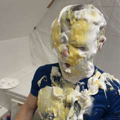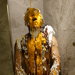 CheekyLuna was surprised by Hugo3294 with a big sloppy cream pie to the face