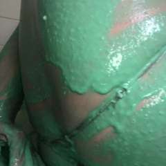 CoverMeInSlime rolled around with TexasBeau on a tarp covered with slime