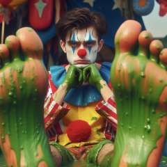Big Bird the Clown trampled over 100 pies, barefoot with MessyMegan
