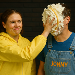 "So much potential, but all a bit dull" Firstly, I love the outfit choices here--form fitting bodysuits. The woman looks particularly good in hers which is a high-legged suit. The couple trade pies to the face and gradually become unrecognisable beneath the thick foam. Then in a second video, the guy is standing against the wall of the shower cubicle, his bodysuit now around his hips, and his partner bends forward and they fuck like this for a while--during which little else happens really. While I initially enjoyed the pieing, it didn't exactly thrill me. I was very much looking forward to the sex, but I found it all a bit bland. I rather wished they had saved some of the mess for the sex itself. There is nothing more exciting than an appropriately timed pie to the face, right as someone is reaching orgasm. This certainly would have been a shot in the arm. This is a fixed camera video and I'm not sure why they decided to crop the video to a square format. It all feels a bit too close up. I also thought it was a strange choice splitting the pieing and sex into two separate videos--I feel doing both in a single video would have been more exciting and more convenient for the viewer. |